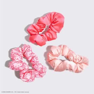 - Set includes three cloud scrunchies in playful Hello Kitty-inspired prints and her classic pink hues